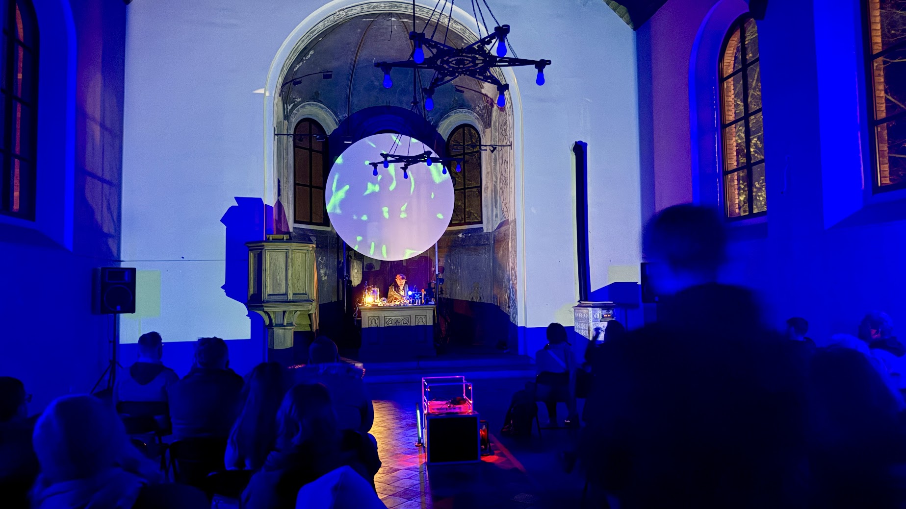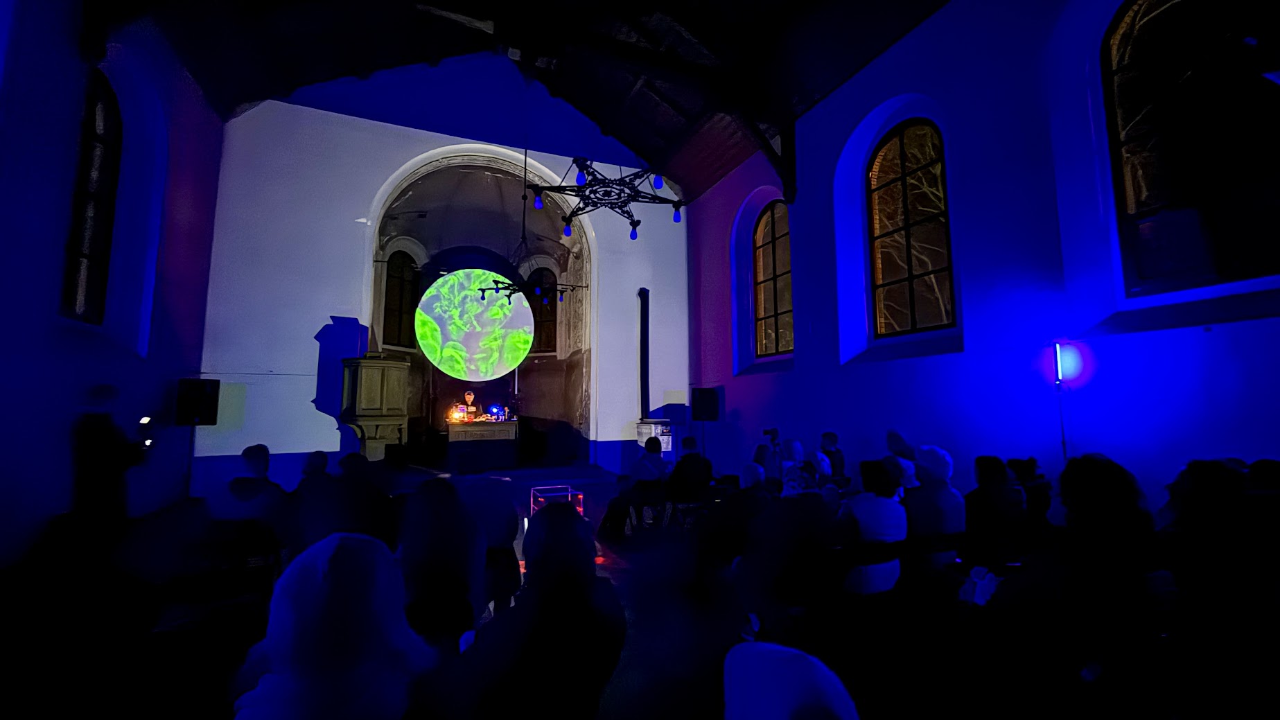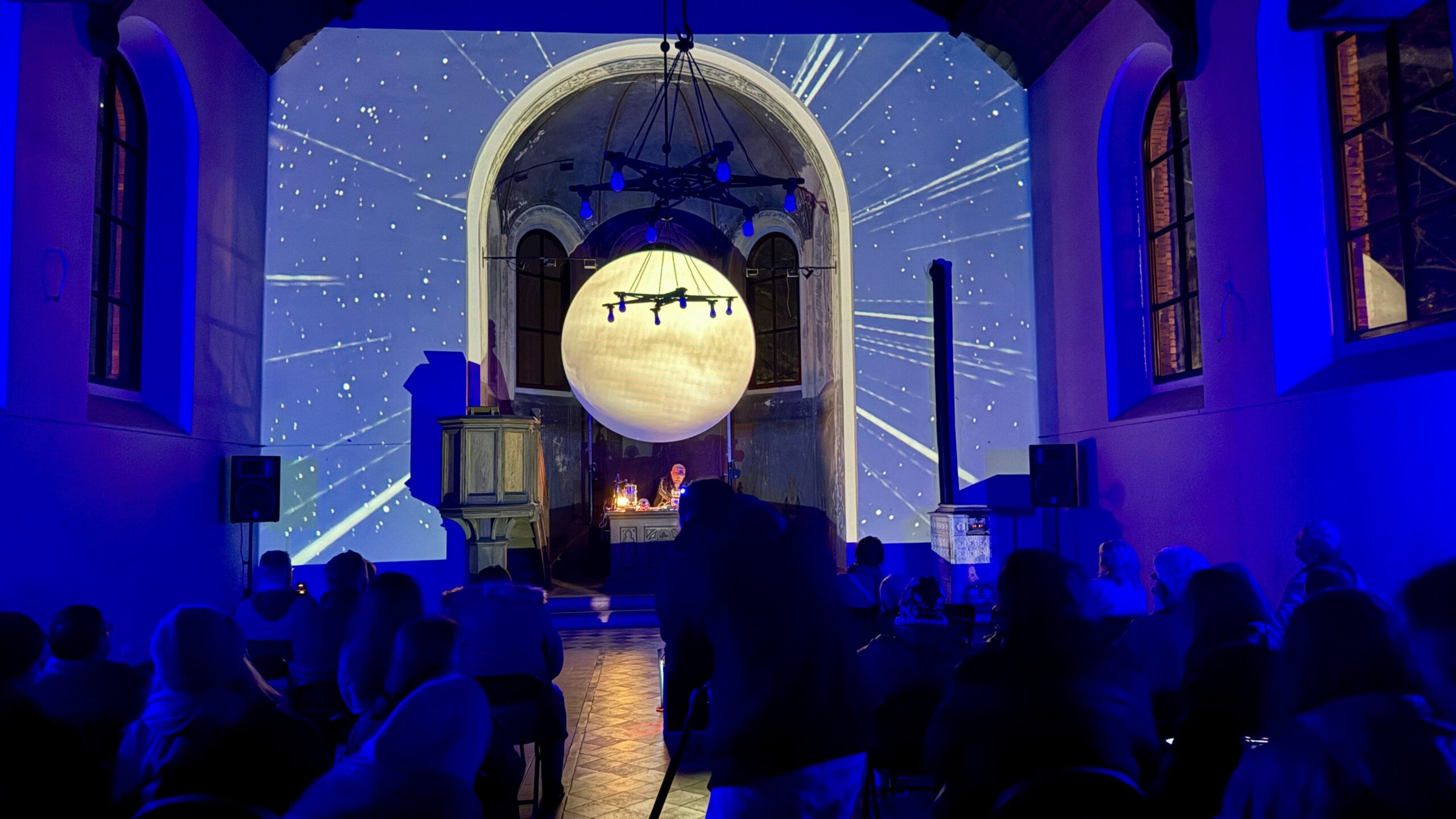 Za nami audiowizualny pokaz Bartosza Posackiego, który wprowadził widzów w świat eksperymentalnych brzmień i obrazów powiązanych z architekturą dawnego neogotycki kościoła ewangelickiego.