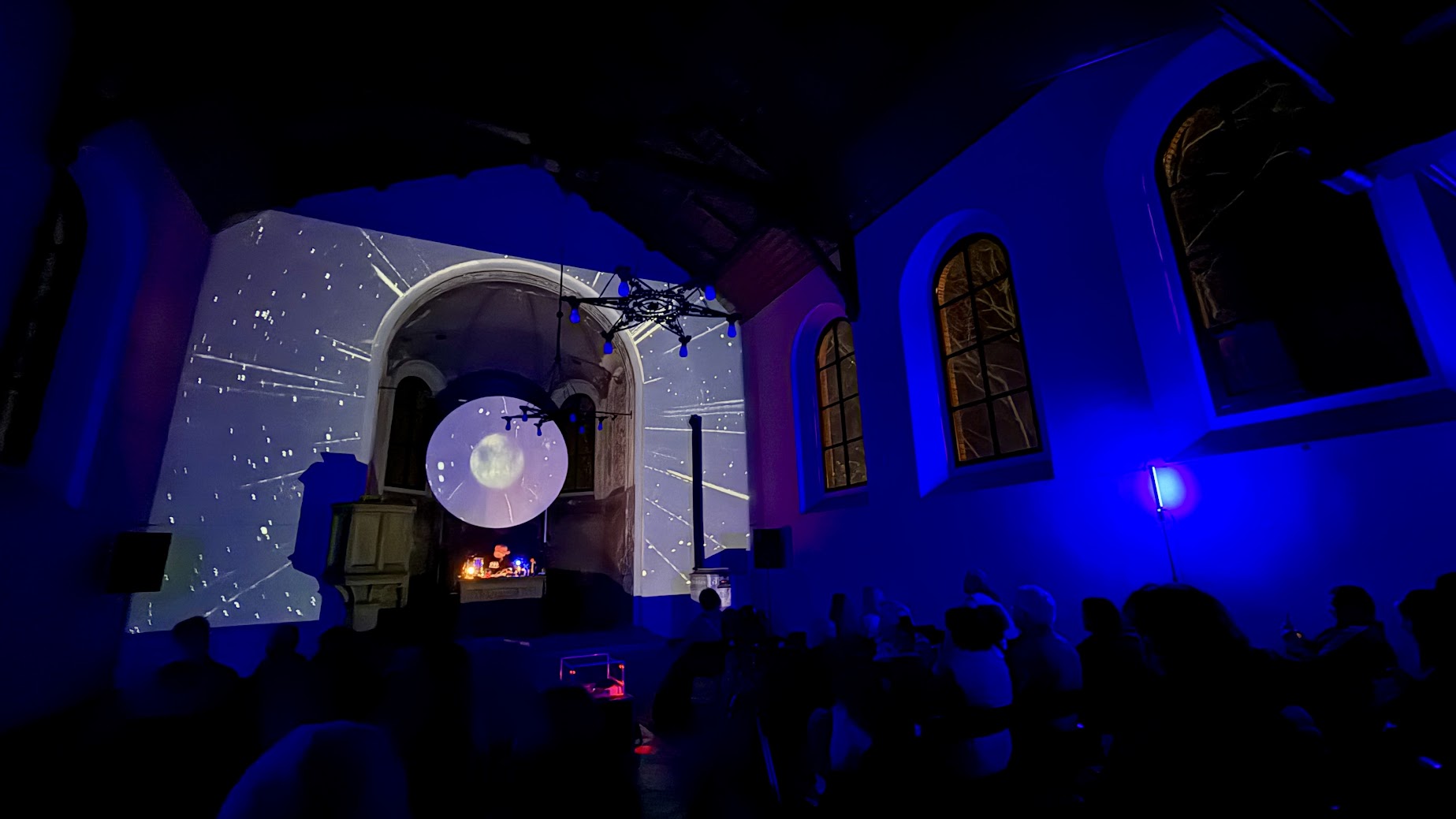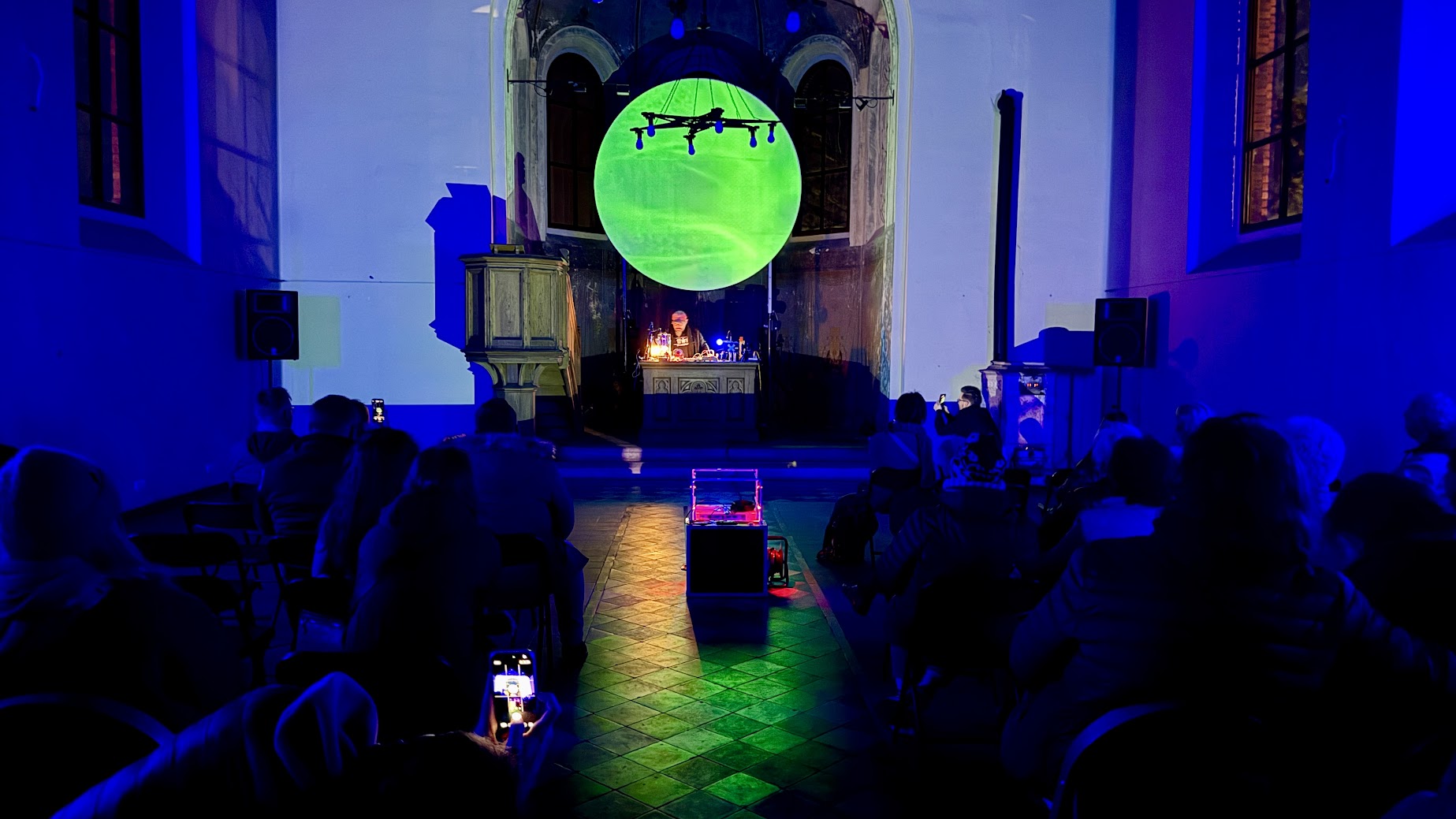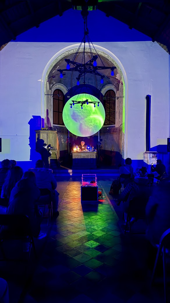 Za nami audiowizualny pokaz Bartosza Posackiego, który wprowadził widzów w świat eksperymentalnych brzmień i obrazów powiązanych z architekturą dawnego neogotycki kościoła ewangelickiego.