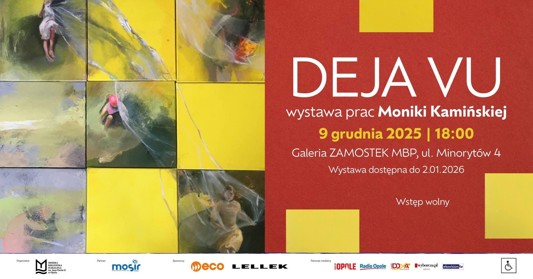 Wernisaż wystawy odbędzie się 9 grudnia 2025 r. o godz. 18:00 w Galerii ZAMOSTEK Miejskiej Biblioteki Publicznej, ul. Minorytów 4.